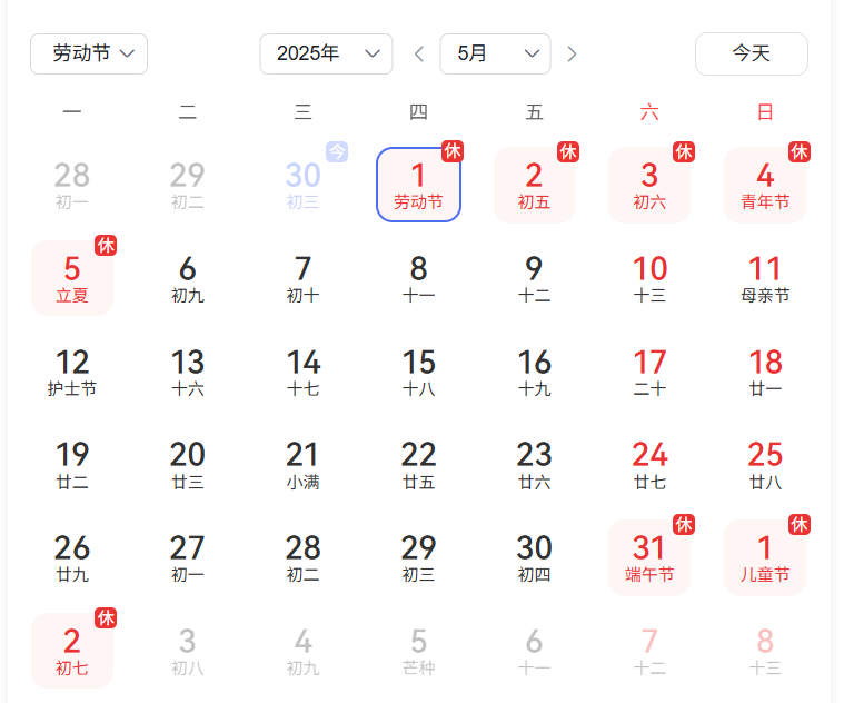 根據(jù)國(guó)家法定節(jié)假日安排,結(jié)合公司實(shí)際情況,現(xiàn)將長(zhǎng)沙思辰儀器2025年五一勞動(dòng)節(jié)放假安排通知如下: