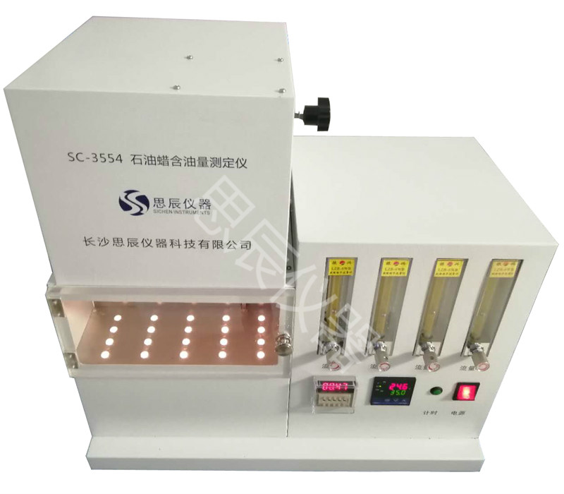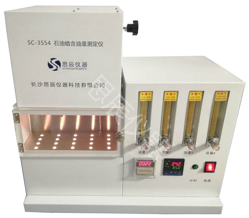 本儀器是中華人民共和國標(biāo)準 GB/T3554《石油蠟含油量測定法》所規(guī)定的要求設(shè)計制造的,本儀器適用于凍凝點在 30℃以上,含油量不大于 15%的石油蠟。對于某些含油量大于5%,在丁酮中不能完全溶解而分層的石油蠟本儀器不適用。 將試樣溶解于丁酮溶劑中,溶液冷卻至-32℃時析出蠟,經(jīng)過濾管取出濾液。并將濾液中的溶劑蒸出,稱重殘留油,通過計算得到試樣含油量的質(zhì)量分數(shù)。