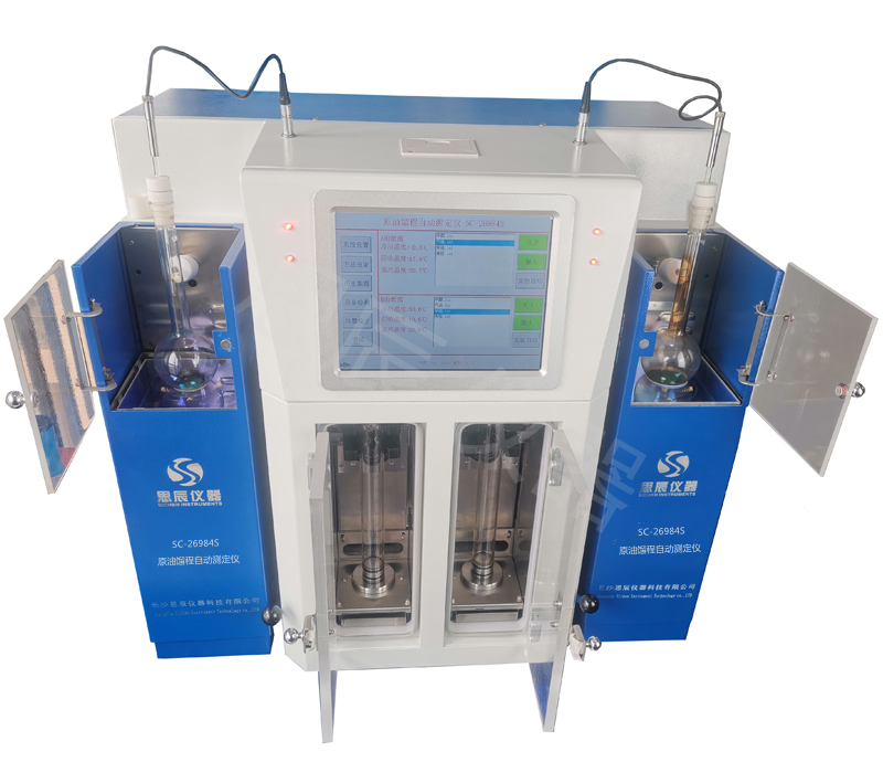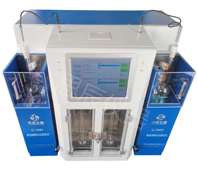 本儀器是我公司新研發(fā)的第三代產(chǎn)品,根據(jù)國家標準GB/26984-2011《原油餾程的測定》標準試驗方法設(shè)計制造的。是集機械、光學和電子技術(shù)于一體,采用進口傳感器,量筒回收體積讀數(shù)采用進口數(shù)控精密光學跟蹤檢測系統(tǒng)。自動完成餾程全過程實驗,廣泛適用于水含量質(zhì)量分數(shù)不大于0.2%的原油的測定。對于水含量質(zhì)量分數(shù)大于0.2%的原油需進行脫水處理后也適應(yīng)??赏瑫r進行兩組試樣的測試實驗,從而大大得提高了工作效率.